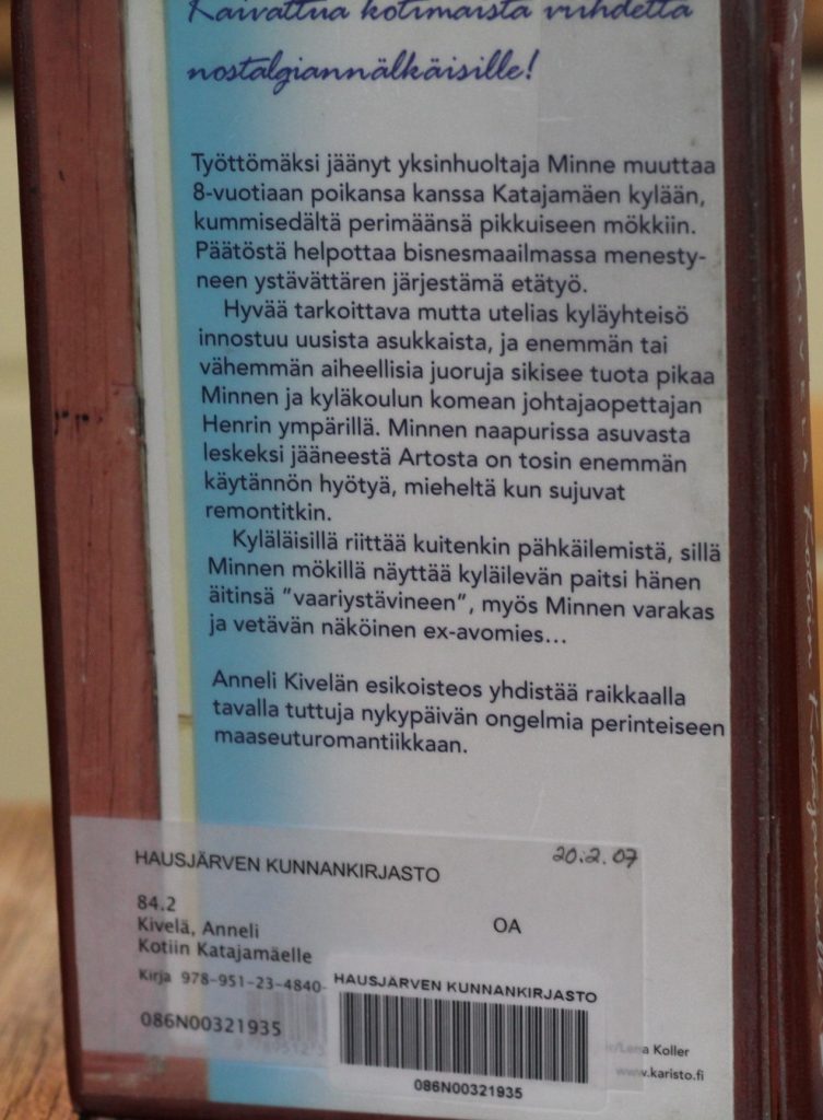 Kirjaan tartuminen jännitti sillä en ole mikään niin sanottujen tyttökirjojen ystävä. Kirjan aihe paluumuutajasta oli kuitenkin kiehtova. Olin jo kerran koittanut lukea tämän kirjan, mutta silloin lukeminen tyssäsi. Nyt luin kirjan aika nopeasti omaan lukutahtiini nähden. Kirjan kerronta oli sujuvaa ja elämänmakuista kerrontaa. Tekstin tunnelmat vaihtelevat niin kuin elämässäkin. Yleisvire on kuitenkin positiivinen. Tilanteiden muuttuminen on elämää ja suuret muutokset pelottavat ja arveluttavat. Kirja luo uskoa, että muutos ei yleensä ole pahasta.